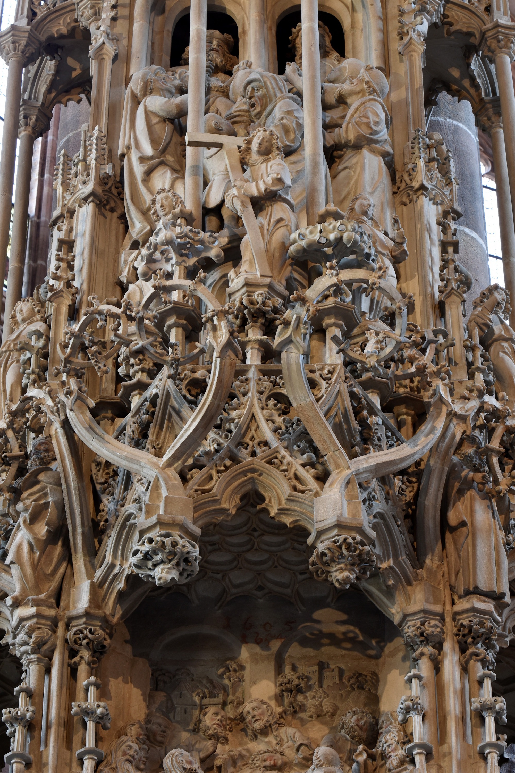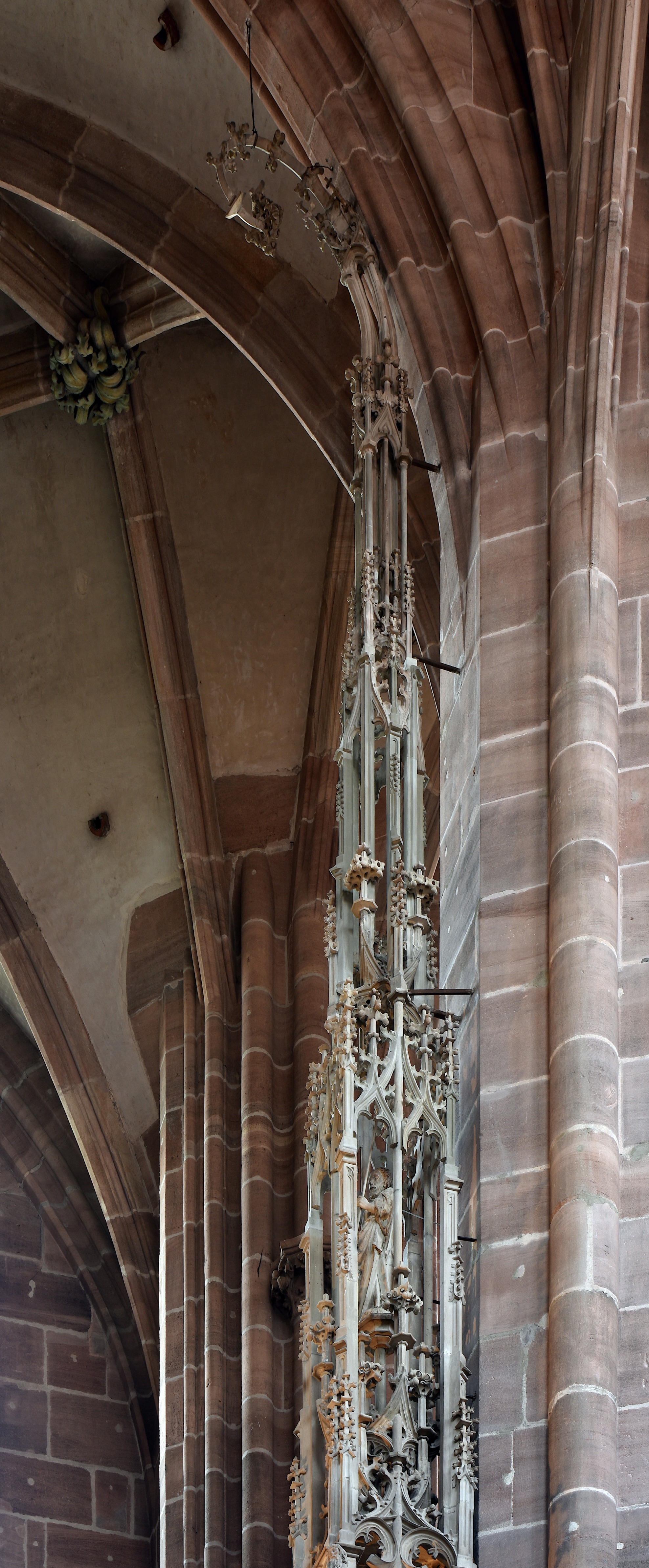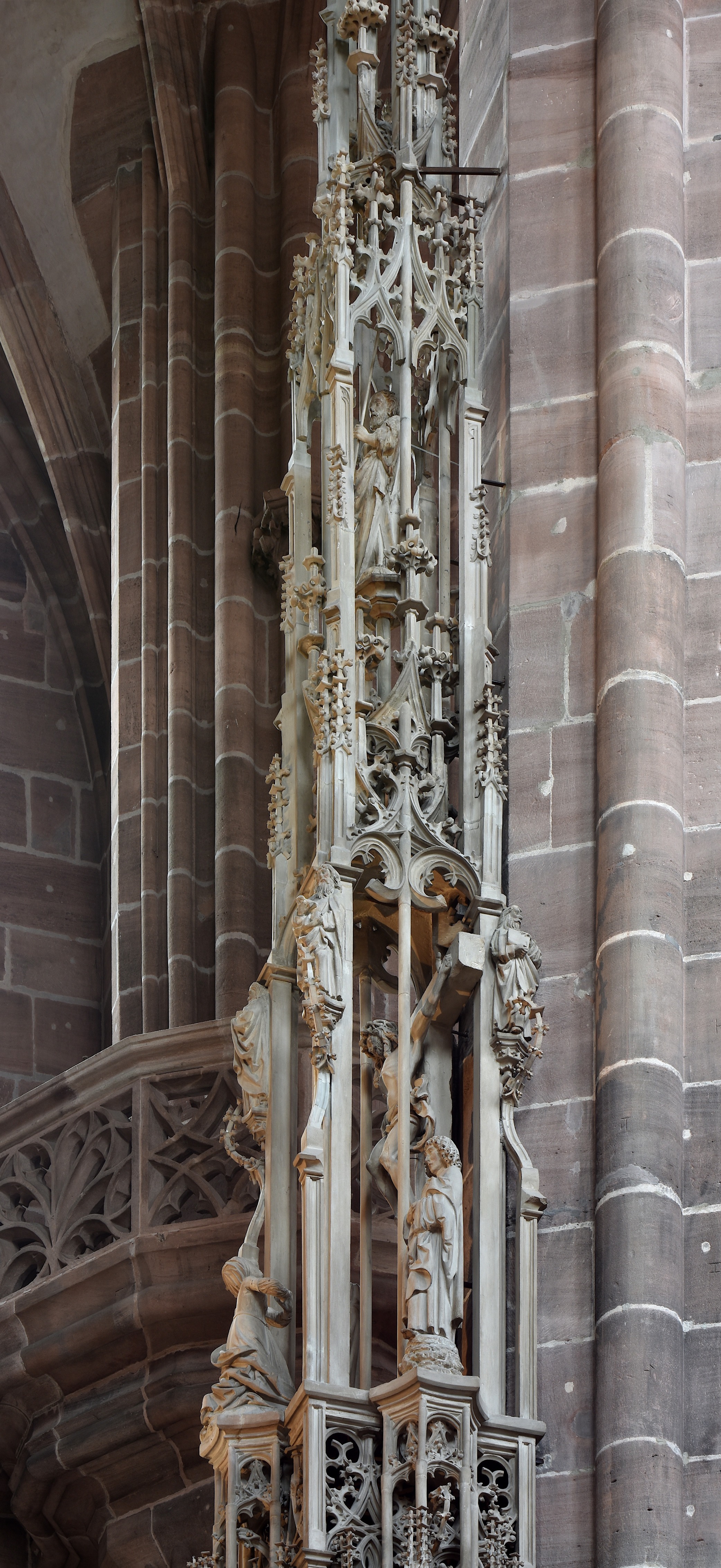 Die Kleinarchitektur ist ca. 20 Meter hoch. Berühmt ist es unter anderem für seinen Kranz aus sich einrollenden Fialen über dem Hostienschrank.