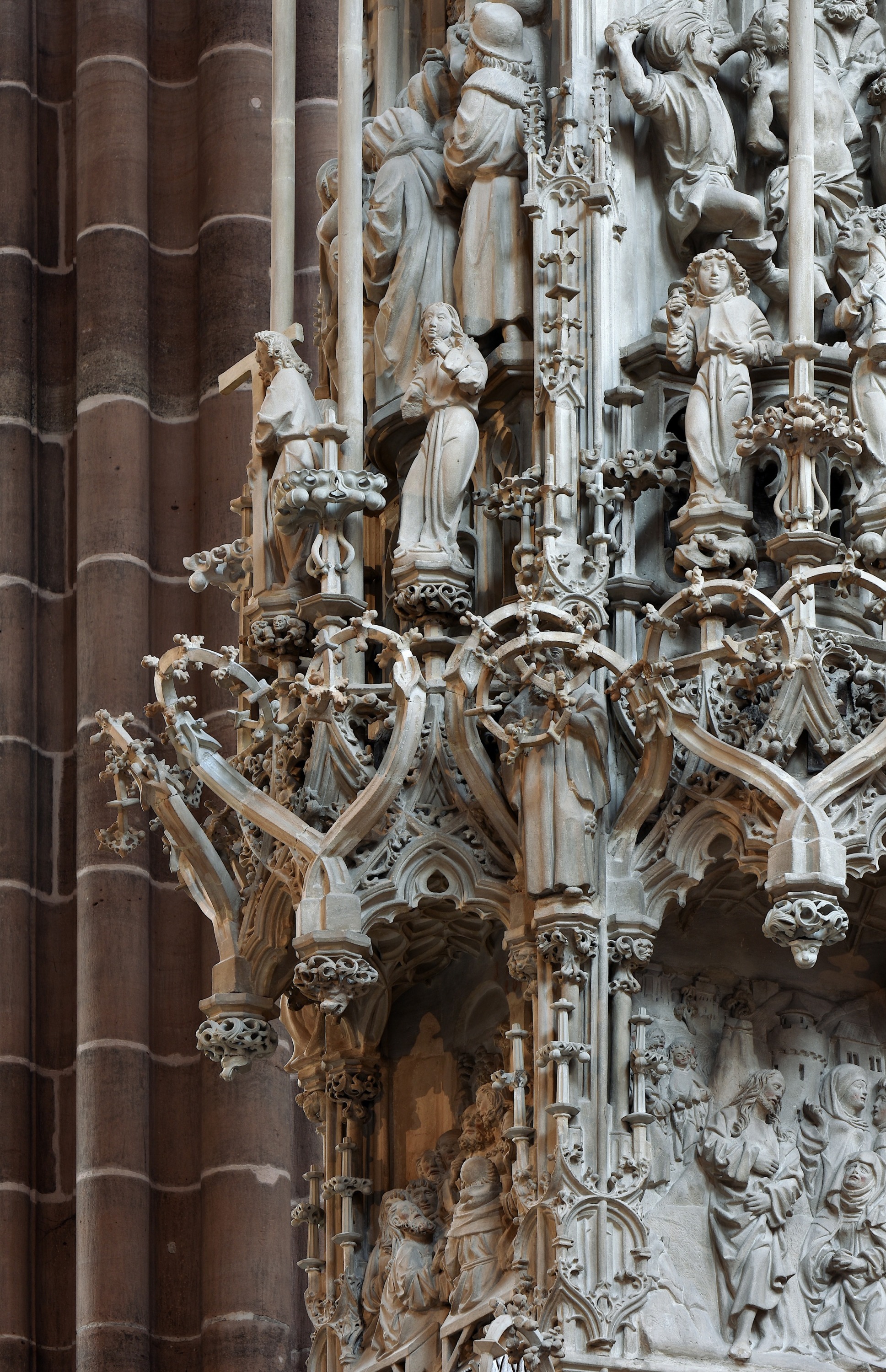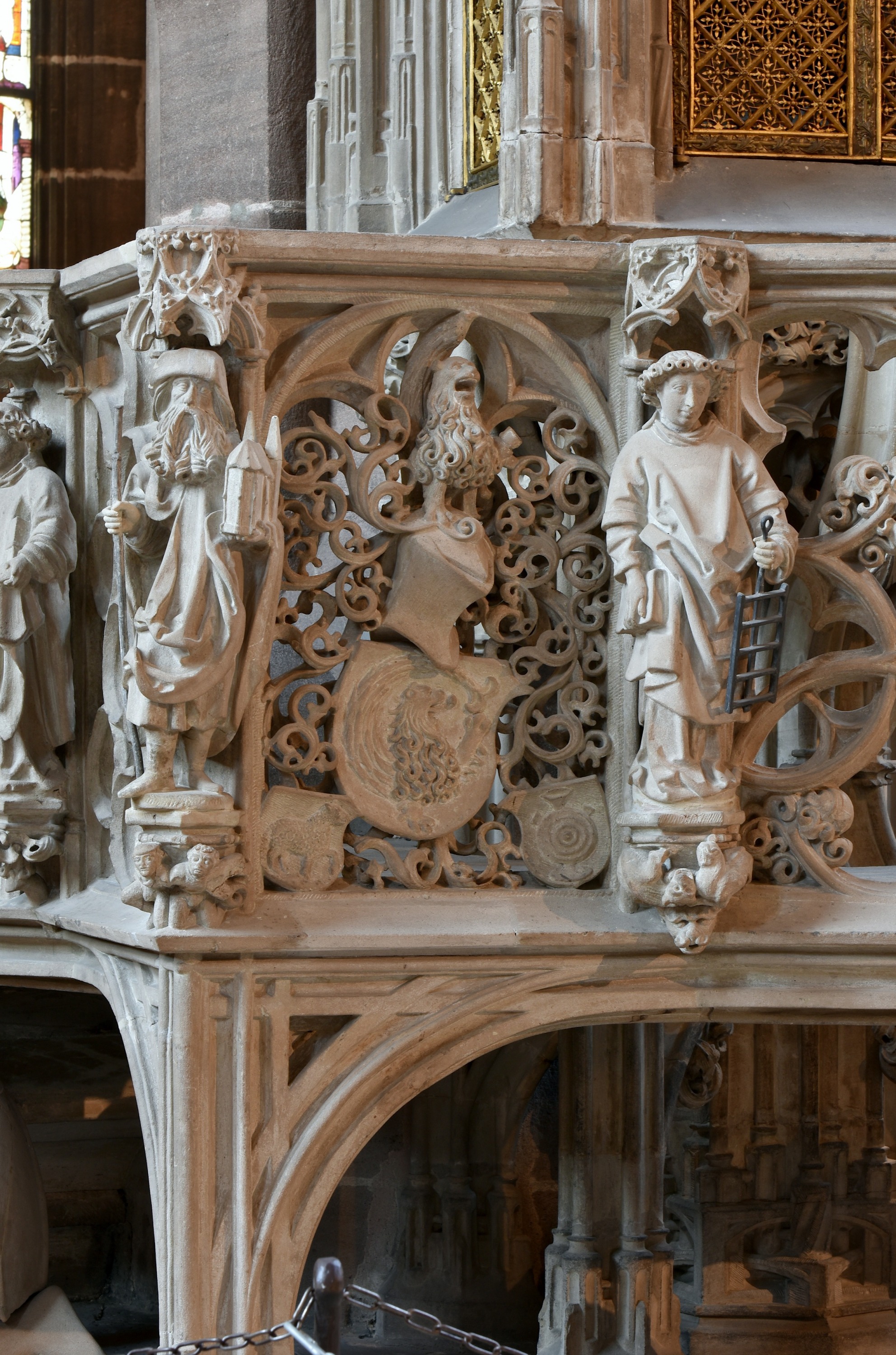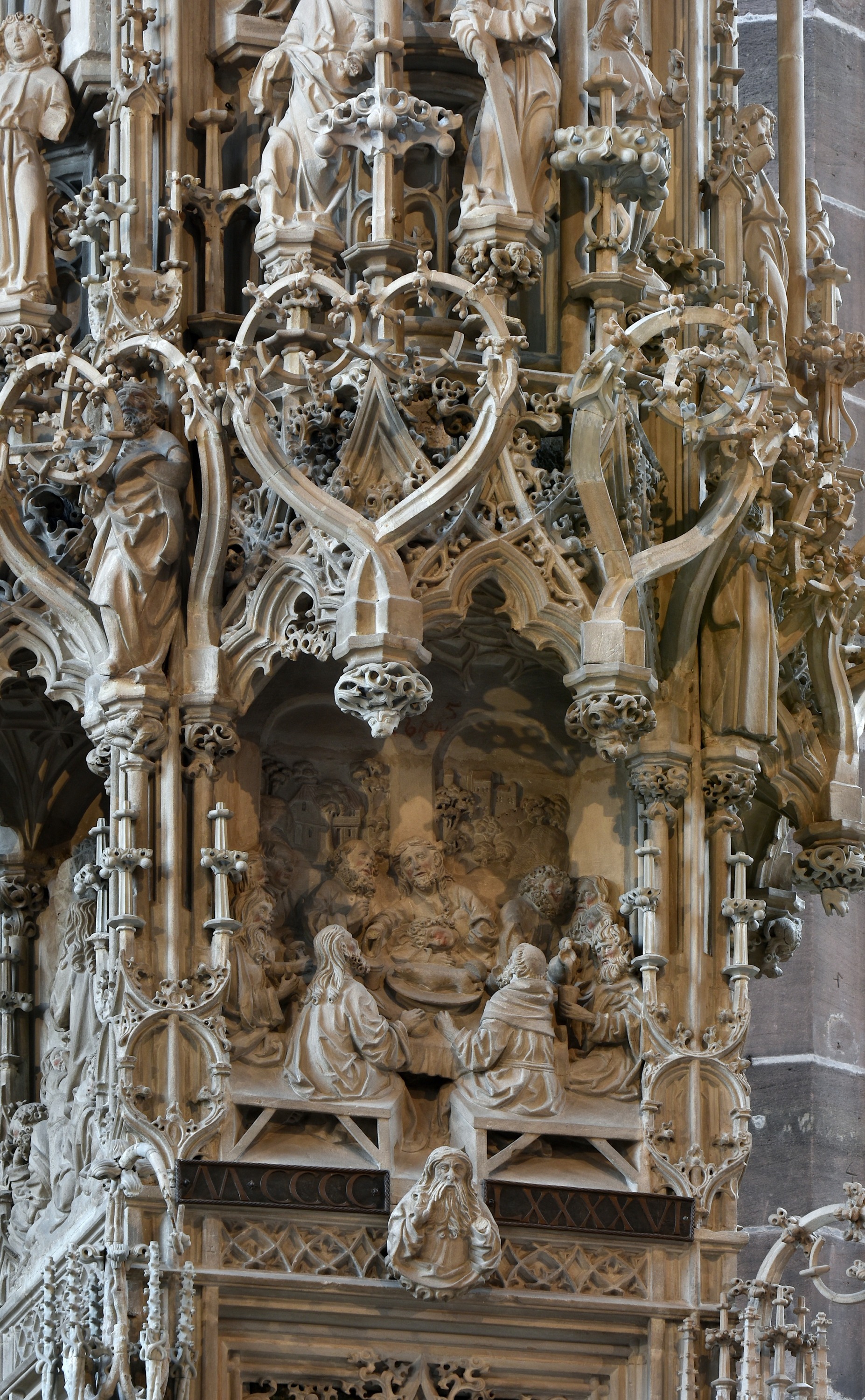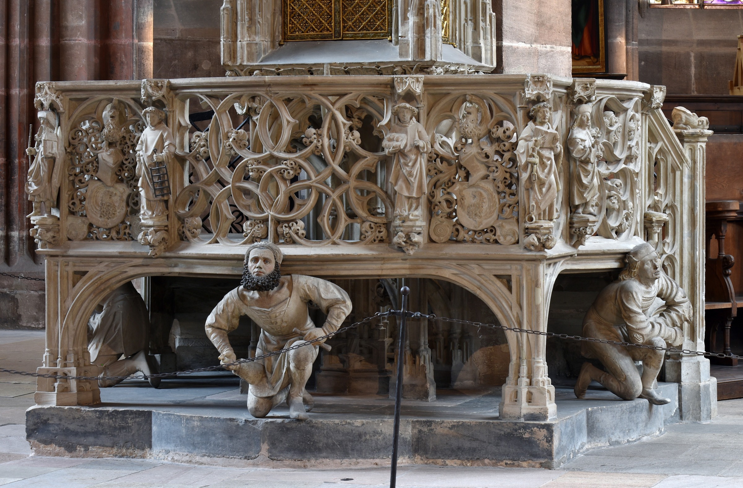 Das Sakramentshaus in St. Lorenz in Nürnberg ist wohl das berühmteste Sakramentshaus Deutschlands. Es wurde zwischen 1493 und 1496 von Adam Kraft geschaffen. Unter dem Umgang hat er sich in einem Selbstbildnis mit Steinmetzwerkzeug dargestellt.